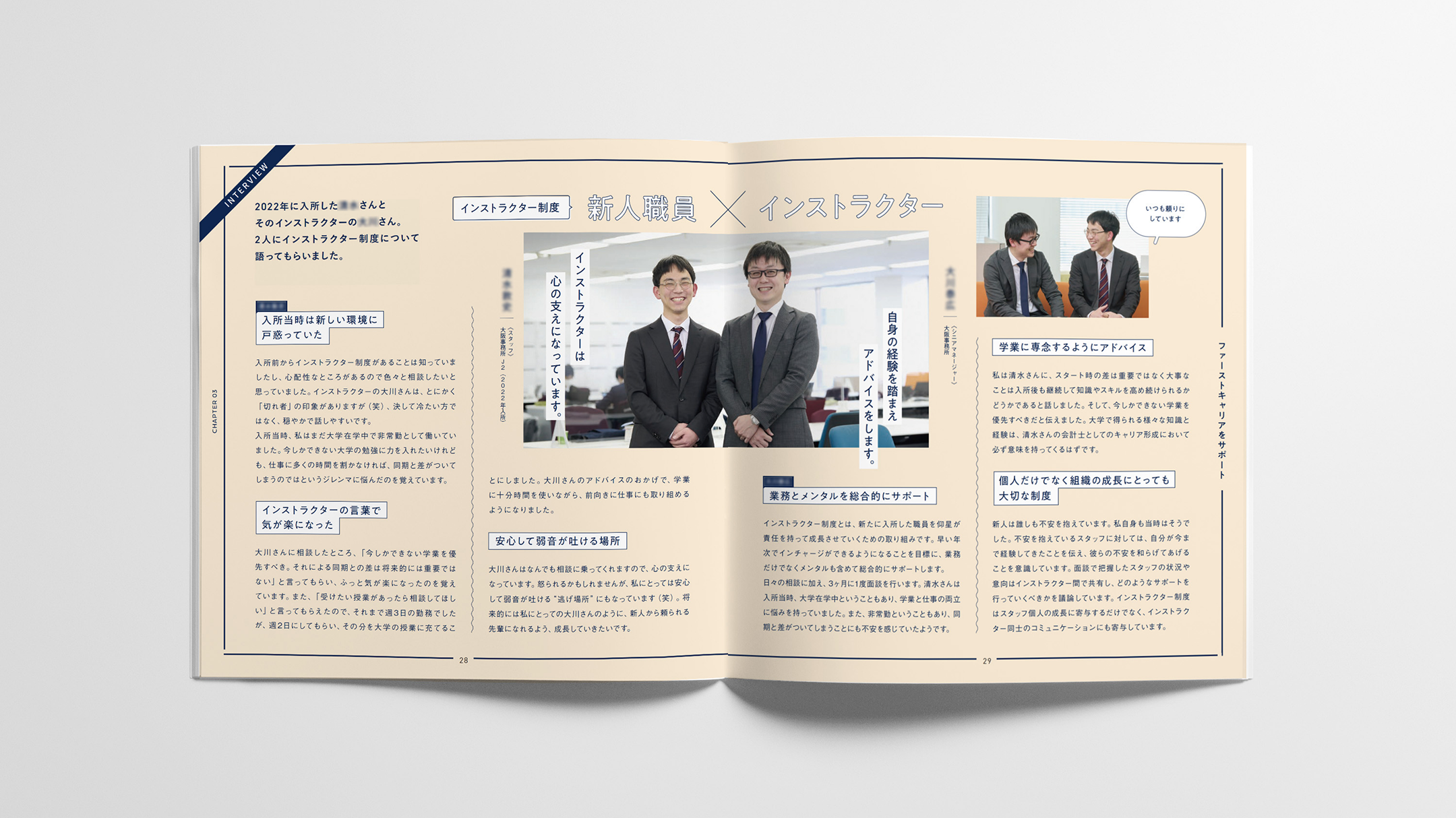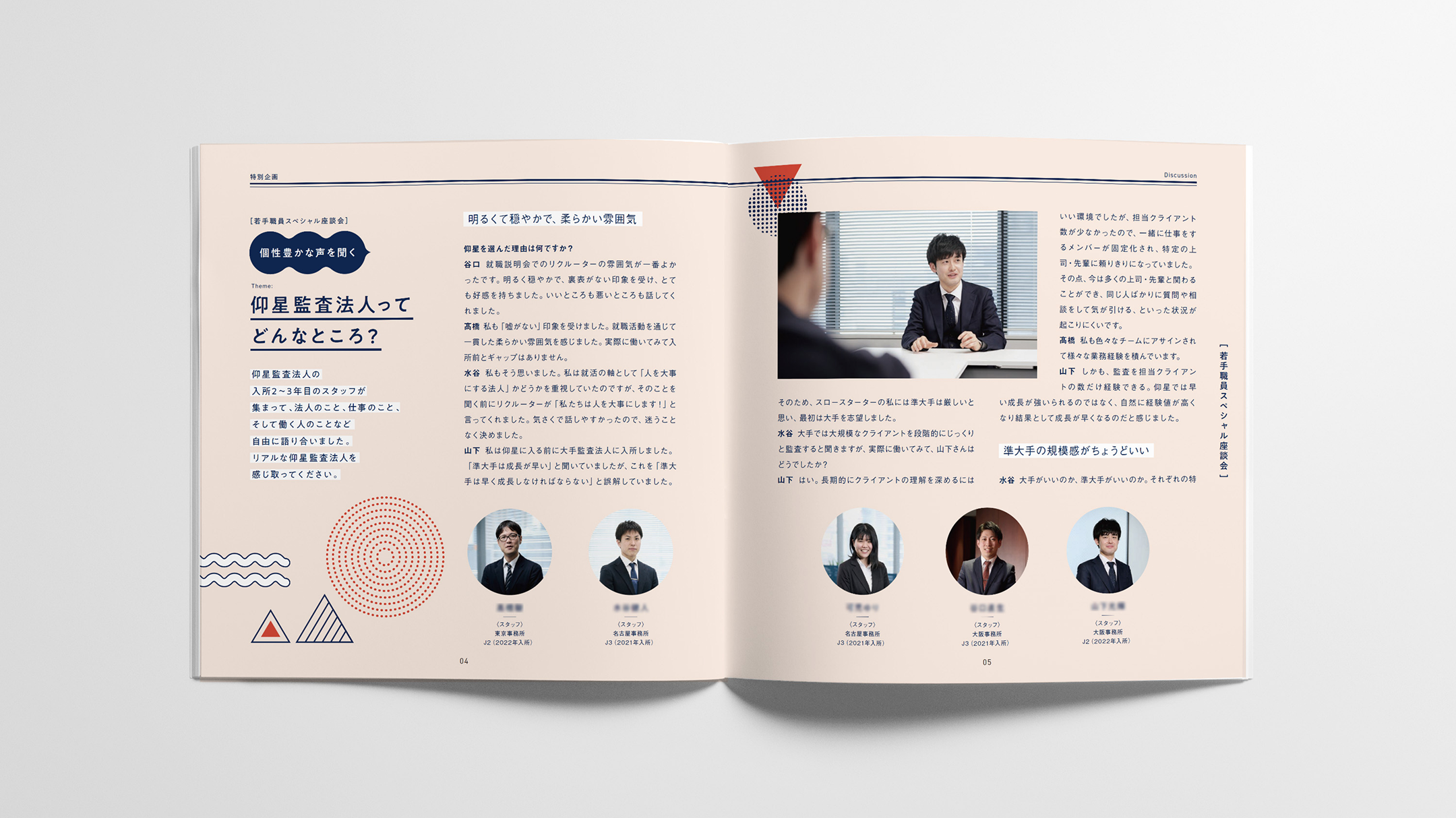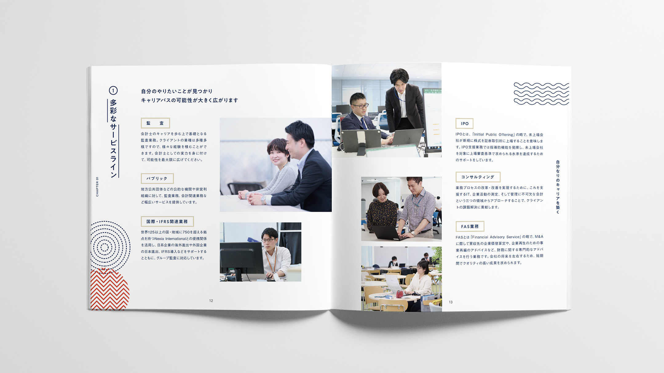 全国主要都市に拠点を持ち、準大手に位置づけられる仰星監査法人。固い印象になりがちな業界イメージを和らげるため、オリジナルキャラクターを開発。キャラクターが案内役として登場し、業務の内容や社内の雰囲気を、親近感のある語り口で紹介しています。専門性と誠実さをベースとした、親しみやすいパンフレットとなりました。