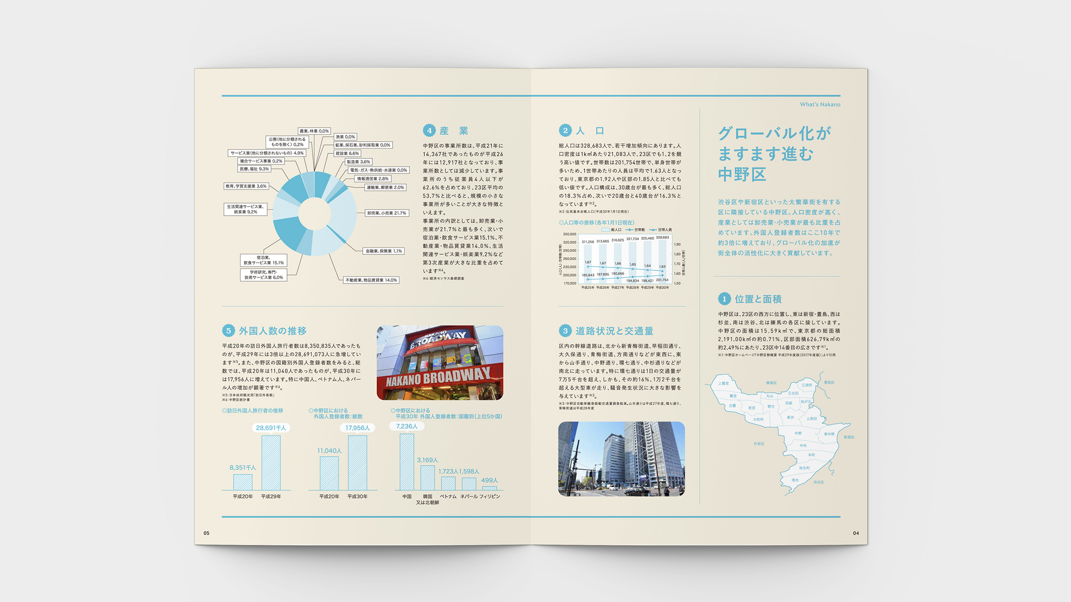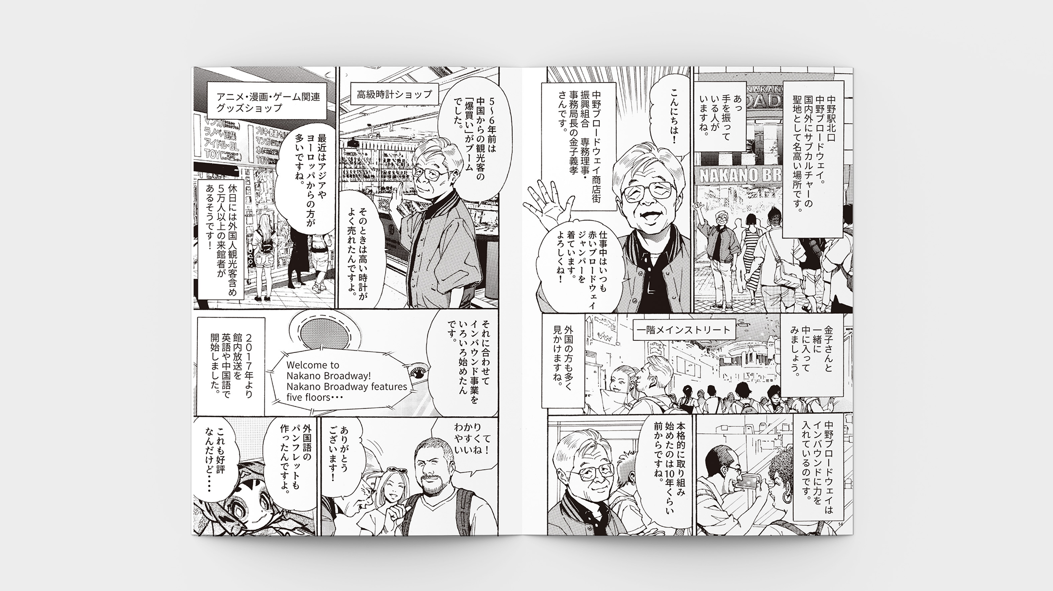 東京商工会議所が発行する、グローバルに展開する中野区の企業の取り組みを紹介する冊子です。グローバル化が進む中野区で、インバウンドや海外展開など、国際的な視点で経営を行っている中小企業の成功例を取材・紹介。インタビュー記事に加えて、成功までのストーリーを漫画で表現。読みやすさと理解のしやすさを両立した構成となっています。